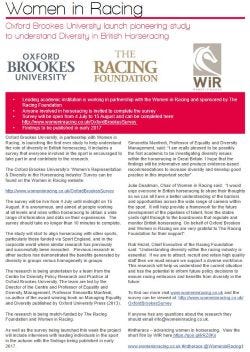 “Women in Racing will do all it can to facilitate change and make sure this research is just the starting point for taking forward the diversity agenda within British horseracing”.8
