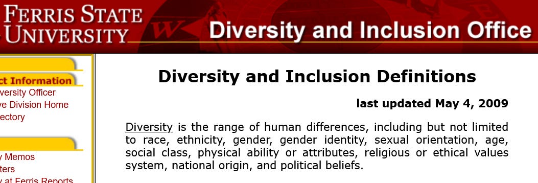 Diversity covers a broad range of human differences, including but not limited to race, ethnicity, gender, gender identity, sexual orientation, age, social class, physical ability or attributes, religious or ethical values system, national origin, and political beliefs.
