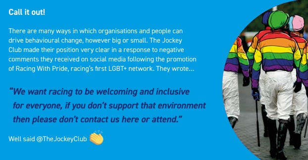 DiRSG’s expectation of compliance was underlined by its endorsement of the Jockey Club’s response in September 2020 to negative comments regarding the formation of Racing With Pride, a LGBT+ networking and activist group. The Jockey Club had said: